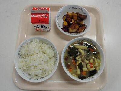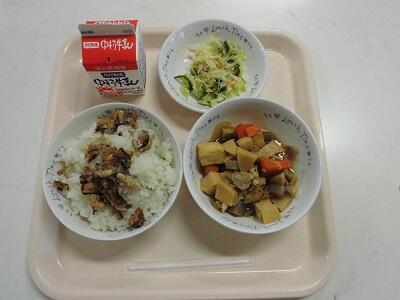 麦ごはん 鶏肉とさつまいもの揚げ煮