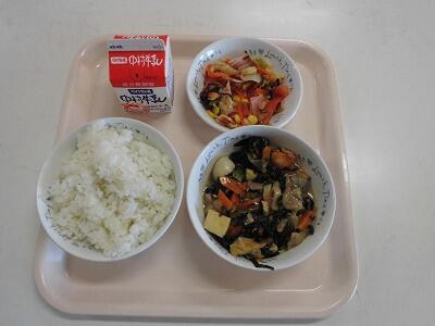 ツナとわかめの酢の物 ヨーグルト 牛乳