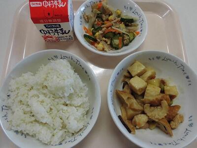 キュウリの中華和え かりかりなばちゃん 牛乳