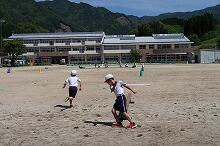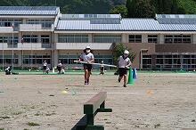 上野小・中学校では、5月29日(日曜日)に小中合同運動会を行います。新年度が始まり一月程度ですが、団技やリレーの練習をしています。5月2日(月曜日)は朝からよく晴れていました。運動場では小学3・4年生が団技の練習をしています。今日が初めての団技の練習だったようで、ルールと動きの確認をしていました。