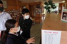 週末に家で本を読むために小学2年生が図書館で本を借りていました。週末は一人2冊まで本を借りることができます。家庭での読書は、読解力を身に付けるだけではなく、落ち着いた行動をとったり、継続する力を身に付けたりする上でも役に立つと言われています。上野小・中学校では「家庭での読書」を勧めています。