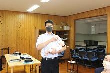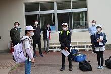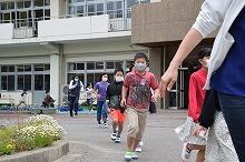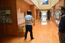 5月6日(金)、小中合同で「不審者対応の避難訓練」を行いました。今回は、「発見した先生や近くにいた先生たちで不審者を子どもたちがいないところへ追い込む訓練」と「子どもたちの安全を確保し、避難する訓練」とを行いました。不審者役は上野駐在所のおまわりさんです。訓練の後、職員にはさすまたの使い方や実際に対応するときに気をつけることなどを教えていただきました。