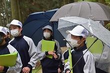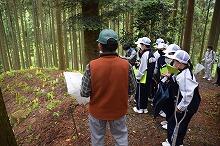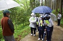 小雨が降るあいにくの天気でしたが、きれいに整備された杉林は緑が美しく、とてもよい話を聞くことができました。