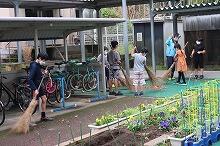 今日の上野は朝から曇っています。校舎の1階では、登校した小学4・5・6年生の美化委員会の児童が清掃ボランティアを行っていました。ありがとうございます。