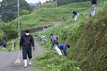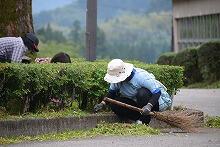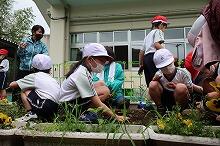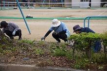 小学1・2年生が上野地区の老人クラブや高千穂町の民生・児童委員さんと一緒に花壇の除草作業を行いました。