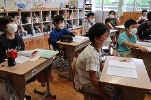 小学3年生の教室では国語の授業で、説明文の読み取りをしていました。2年生の教科書と比べると字も小さくなり、文章も長くなっています。