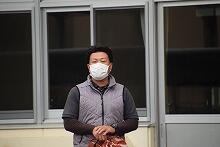 今日も上野の空は雲に覆われています。登校した小学5・6年生と中学1・2年生が校舎前や運動場の美化作業を行っています。ありがとうございます。