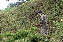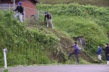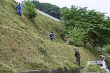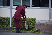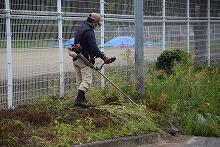 上野小・中学校PTAでは、年間3回の奉仕作業を実施してくださいます。今日(5月15日(日曜日))は「第1回PTA奉仕作業」でした。保護者と職員、そして小学5・6年生と中学生が参加し、午前6時30分から作業を始め、運動場やプール周辺など校内の草刈りや運動場の除草などを行いました。