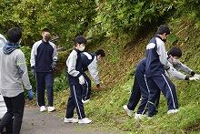 5月6日(金)、中学1年生が町内にある「クマガイソウ自生地」を見学し、[保存活動をされている「高千穂 森の会」の代表の方に講話をしていただきました。