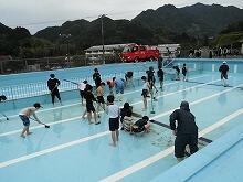 PTA奉仕作業を終わった後、残ってくださった保護者と子どもたちとでプール清掃を行いました。