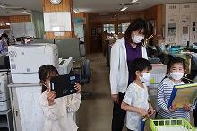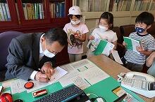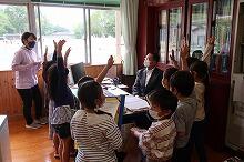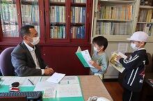 職員室で教頭先生に会いに行った1年生は、校長室に来て、「どんな仕事をしているか」「どうして先生になったのか」「好きなたべものは何か」など一人ずつ質問をしていました。