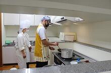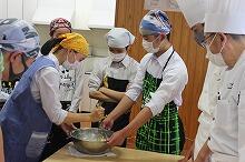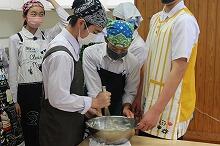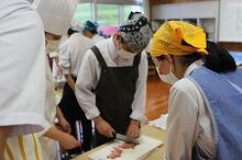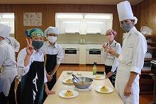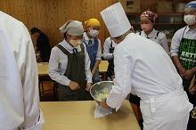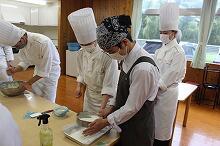 5月13日(金曜日)、延岡学園高校調理科の先生と高校生に来ていただき、中学3年生が調理体験学習を行いました。制服から調理師の服装に着替えた高校生はとても凜々しく、受け答えもしっかりしていて、中学生との違いを目の当たりにし、感心しました。今日の体験学習は、調理だけではなく、高校で専門的に学習していることや高校と中学校の違いなど、多くのことを学ぶことができました。上野中にお越しいただいた延岡学園高校調理科の先生方、そして高校生の皆さん、ありがとうございました。
