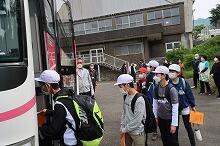 今朝は玄関前で出発式を行い、田原小学校の5年生と同じバスに乗りました。上野支所前で見送りをしていただいた保護者の皆様、ありがとうございました。