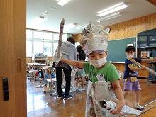 小学2年生が図工の学習で新聞紙を使った工作「しんぶんしとなかよし」を行いました。新聞紙を破ったり、丸めたりして思いついたことを基に、様々な作品が作られていました。クマのぬいぐるみや忍者に侍など、友達と協力して大きな作品を作る子もいました。