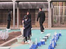 入試を終え、来週卒業の日を迎える3年生が校内の美化活動と記念植樹を行いました。美化活動は武道場の掃除や雑巾がけ、体育倉庫の片付けなどを中心に、これまで使ってきた場所をきれいにしました。