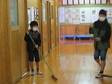 登校後は、玄関や廊下の掃除を中学生がしてくれていました。写真にはありませんが、小学6年生も数名、活動してくれています。