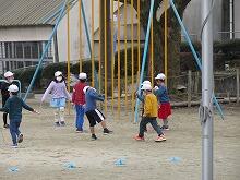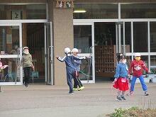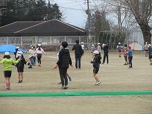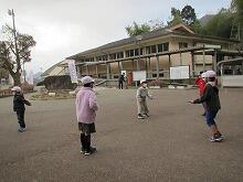 今朝は「ジャンプタイム」です。小学生は1時間目の授業が始まる前に運動場で縄跳びをしていました。