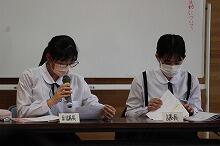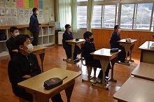 送別行事は、コロナ対策として、学年ごとに企画を準備しました。2年生は早口言葉を準備し、3年生は一人ずつ指定された言葉をクリアできたら最終ステージへ行くことができました。最後はみんなで中学校生活を振り返るスライドショーを見ました。卒業前の楽しい時間になりました。