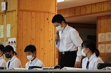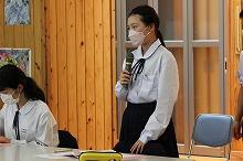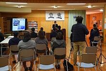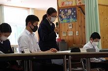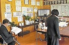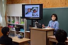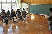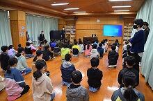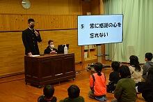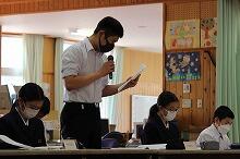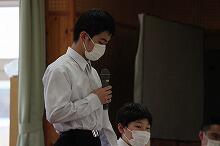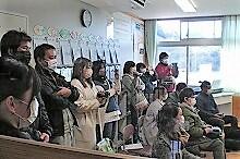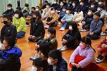 修了式の後、小学校と中学校に分かれて、それぞれで集会を行いました。小学校の集会では、この春に転校する児童の紹介とあいさつが行われました。