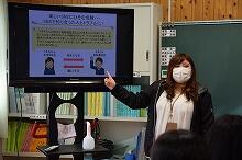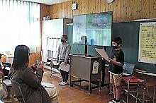 中学2年生の理科の授業です。以前行った「水の電気分解」の結果も思い出しながら、水の分子モデルについて勉強していました。小学生の授業を見た後で中学生の授業を見ると、内容が難しくなっていることが分かります。