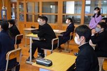 校舎の3階は中学生の教室です。1階の小学1・2年生とは雰囲気がずいぶん違っています。本校では、小学1年生から中学3年生までの、義務教育9年間の子どもたちの成長のようすを毎日見ることができます。