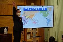 校長の話は、3年前の冬にアフリカに行ったときのことを写真を使いながら話しました。子どもたちがイメージしているアフリカとは違った景色を見て驚いていました。