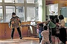 小学3年生の理科の授業は、中学校の教頭先生が担当しています。