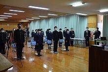 上野中学校は3月16日(水)、上野小学校は3月24日(木)にそれぞれ卒業式を行います。今日は小学6年生が1時間目、中学3年生が3・4時間目に卒業式の練習をしました。中学3年生は昨日、一昨日に県立高校一般入試を受けた生徒もいるため、今日が初めての練習です。進行を務める先生の説明を聞き、入場の仕方や礼の仕方などを一通り練習していました。