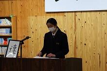 3月16日(水)、快晴の空の下、高千穂町教育委員 工藤 兼一様、副町長 藤本 昭人様、本校PTA会長 廣木 哲也様にご臨席をたまわり、「高千穂町立上野中学校 第75回卒業式」を挙行しました。式では校長が卒業生一人一人に卒業証書を授与しました。コロナ禍のため卒業式の歌はありませんでしたが、気持ちのこもった送辞や答辞があり、感動的でとても良い卒業式でした。
