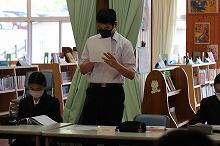 2時間目の小学5年生の教室は国語の授業でした。大きな声を出すことを控えているため、子どもたちはマスク越しのはっきりとした口調で教科書を朗読していました。教科書に限らず、本を読むことで多くのことを学び、考えることができます。ご家庭で「読み声」をしていただけるとありがたいです。