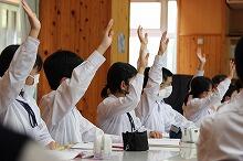 本校では小学校と中学校の授業を見ることができます。本校の先生は、教材の関連や系統を知ったり、お互いの指導のようすを見たりすることができます。上野小・中学校は、先生たちにとっても、学ぶことが多い学校です。