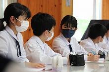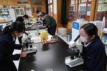 中学3年生が理科の授業でタマネギの根の先端を使い、細胞分裂のようすを観察していました。塩酸で処理をして手順どおりプレパラートを作成しましたが、目的の染色体はなかなか発見できず、苦労していました。一人一台ずつ顕微鏡を使い、一生懸命観察している子どもたちの姿がとても良かったです。