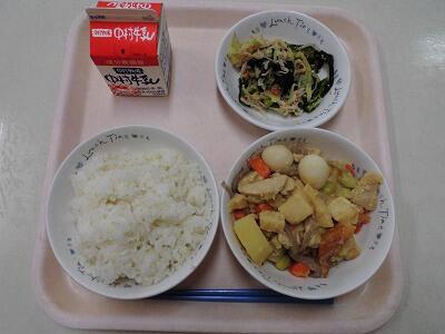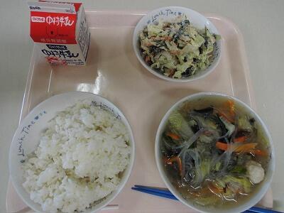 ちくわとわかめの和え物 デザート 牛乳