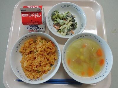 野菜のレモン和え 卵スープ 牛乳