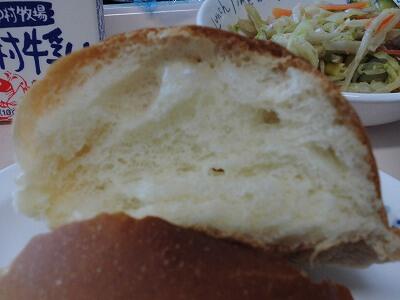 丸い黒糖パンを開いてみました。やわらかくて白いパンです。