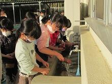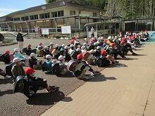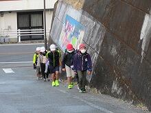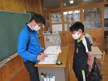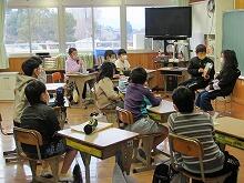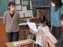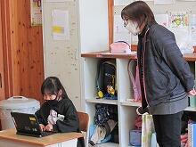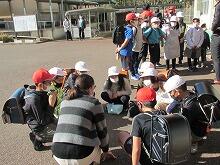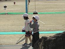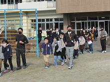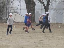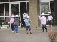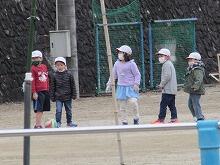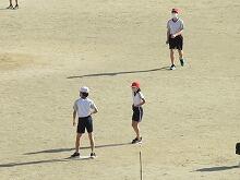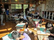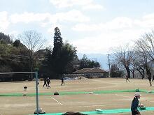 金曜日の午後の授業。運動場では小学5・6年生が体育の授業でティーボールをしていました。その横を小学2年生が帰っていきます。