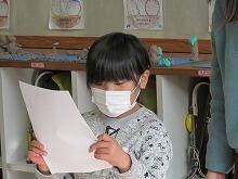 おひっこしのとちゅうに、友だちがきました。そして、家の中を見せました。すると、「わあ、大きな家だね。」と言ってくれました。ぼくは、うれしかったです。広い家に友だちをいっぱい呼んで、あそんだら、楽しくなりそうです。