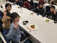 お昼ご飯はカレーでした。朝早くからの移動だったので、みんなお腹ペコペコだったようです。あっという間に食べ終わりました。美味しかったです。