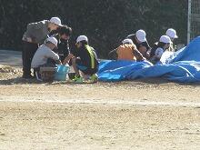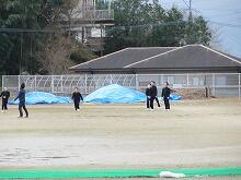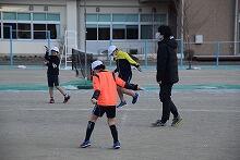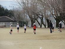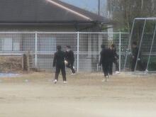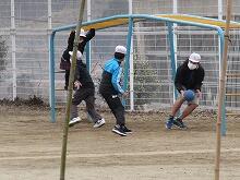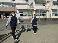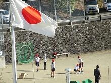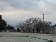 今日は朝から風が強く吹いていました。いつもは多くの小学生が遊んでいる昼休みの運動場ですが、今日は中学生がサッカーをしているだけでした。