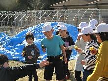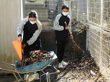 焼き芋は運動場の端に穴を掘り、そこに木と落ち葉を入れて火をつけ、火が弱まったところでぬれた新聞紙とアルミホイルでくるんだサツマイモを入れて焼きました。今日の焼き芋のために、子どもたちは校庭の落ち葉も集めていました。