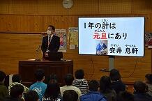 校長あいさつに続き、各担当の先生が、授業やテストのこと、生活面のきまり、部活動のことなどを説明しました。上野小学校の児童と上野中学校の生徒は同じ校舎で勉強し、運動会なども合同で行っていますが、小中併設校なので、小学6年生は3月に卒業式を行い、4月に入学式を迎えます。今日の説明会で、中学生になることへの自覚をもち、残り2ヶ月程度となった小学校生活を充実させてもらいたいと思います。