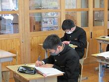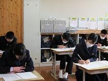 先週の教育相談中の自学自習のようすです。写真を撮った後、遠くから20分程度教室を見ていましたが、黙々と学習しています。教室には先生はいません。私立高校入試と合格発表、県立高校推薦入試が終わりました。一ヶ月後に県立高校一般入試が行われます。みんな真剣です。