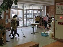 これまでは、おもに小学6年生が玄関を掃除していることが多かったのですが、最近は小学5年生も一緒に玄関などの掃除をしています。また、中学生は新生徒会役員になり、中学1・2年生が校舎周りや登校してくる坂道の掃除をしたりしています。上野の寒い朝も頑張っています。ありがとうございます。