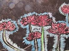 小学4年生が図工の時間に取り組んでいた「版画」が完成し、階段の踊り場に掲示してあります。