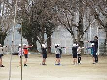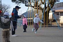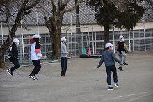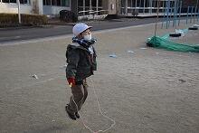 2時間目の運動場では小学3年生と4年生が体育の授業で縄跳びや鉄棒をしていました。気温は2℃です。寒さに負けず、元気な上野っ子たちです。