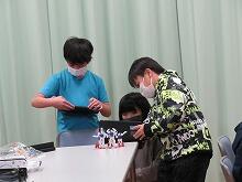 前半は実際にプラモデルを組み立てました。ほとんどの児童が初めてプラモデルを組み立てましたが、説明書を見ながら全員完成しました。中には10分程度で作り上げた児童もいました。完成後はガンダムにポーズをとらせて自分の使うタブレットで撮影も楽しんでいました。授業の後半は、プラモデルを生産する工場の見学動画を配信映像で視聴しました。