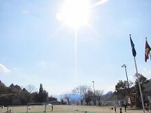 今日の上野はよく晴れていて、昼休みの運動場は昨日よりも暖かく感じました。運動場では子どもたちが楽しそうに遊んでいました。