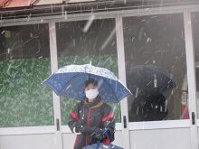 マリンスポーツの時だけ奇跡的に雨が上がり、楽しく体験することができました。みんな、すごく楽しそうでした。