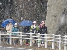 2時過ぎには青空も見え、小学1年生が下校していきましたが、3時前から急に冷え始め、雪が降り始めました。今は強い風も弱まり雪も止んでいます。もうしばらくすると修学旅行生が帰ってきます。