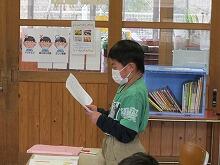高千穂小学校の栄養教諭の先生にお越しいただき、小学1年生の教室で「食に関する授業」をしていただきました。テーマは「元気に過ごすための食べ方」でした。1年生が考えやすいように絵をたくさん使っての説明でした。授業の終わりには、この時間に勉強したことのまとめとして、これからどのような工夫をして苦手なものを食べるか一人ずつ発表しました。